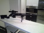 Then i started working on the RSI scope mount. To mount this you have to drill and tap 3 holes into the reciever. 2 above the breach and one on the left rear side. I was nervous but all in all i didnt do a bad job. I tried boresighting before drilling but when i was done i was aiming slightly right. But nothing major. I did tilt the front end down slightly so i can get some more adjustment for longer range shots. Beware this is a pain in the arse to mount. If you have no skills dont try it. I cecked, double checked, center punched my marks, took my time and still had a bit of trouble. I was just slightly off on one hole because the drill must have walked a touch and this cause me to have to ream out the mounting holes a bit for it to mount correctly. Also you have to cut down the screws and the block that fits into your rear sight base. They send these over sized so the will fit all action types.